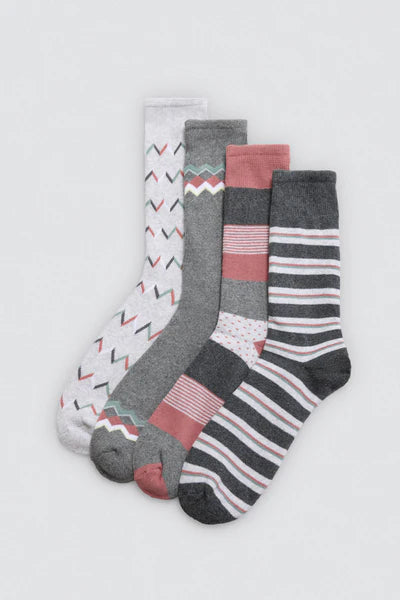 Confezione da 4 paia di calzini termici stampati da donna con polsino anti-pressione.